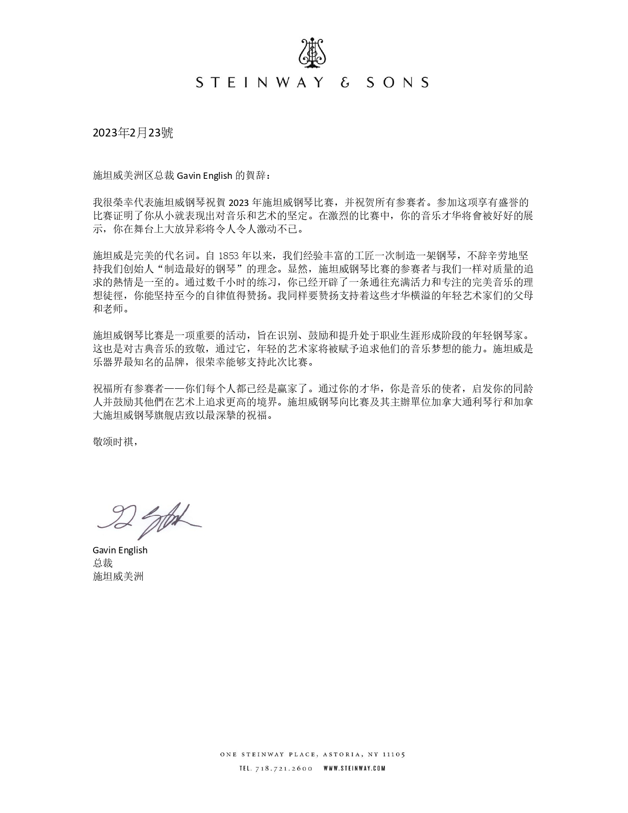 施坦威青少年钢琴比赛,为年轻的音乐爱好者和艺术人才搭建起实现梦想的舞台,使他们能够像大师一样演奏世界上最杰出的施坦威三角钢琴,并把欧洲古典音乐和施坦威钢琴文化介绍给加拿大青少年,成为促进钢琴音乐跨国界交流的友好使者,并让更多的年轻人在施坦威的启发、带动和支持下走向更高的艺术殿堂。